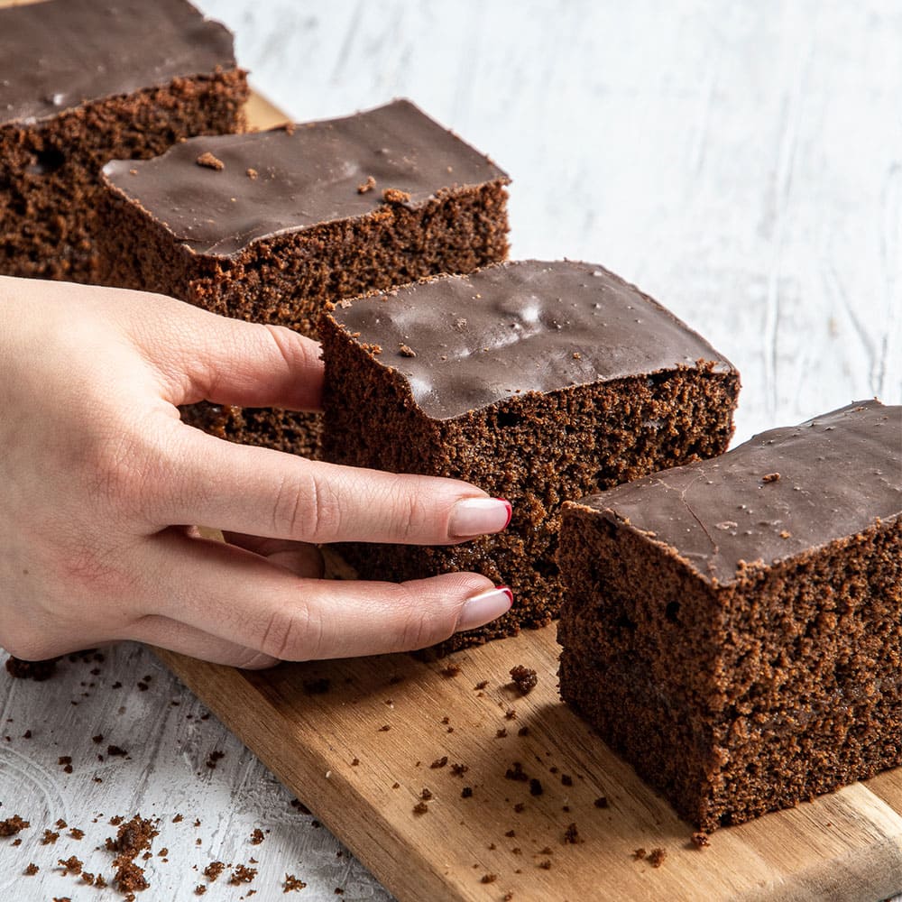 Un bizcocho tipo brownie, esponjoso y chocolatoso, con un relleno de arequipe y cubierta con chocolate. Perfecta para los que les encanta el dulce y las tajaditas en forma de cuadrados. Versión pequeña.