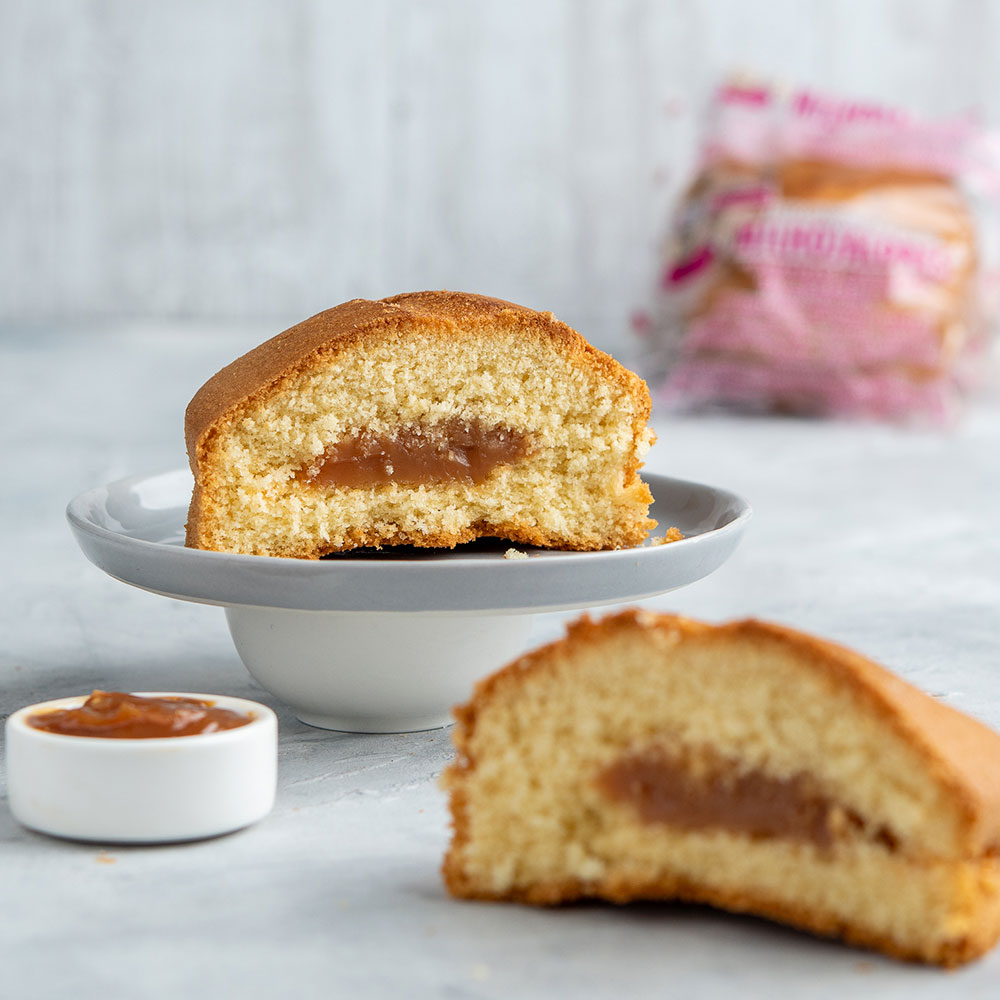 Ponqué esponjoso de vainilla con centro de arequipe. Empacado en unidades prácticas, es ideal para loncheras, refrigerios o como un detalle dulce para consentir a alguien.