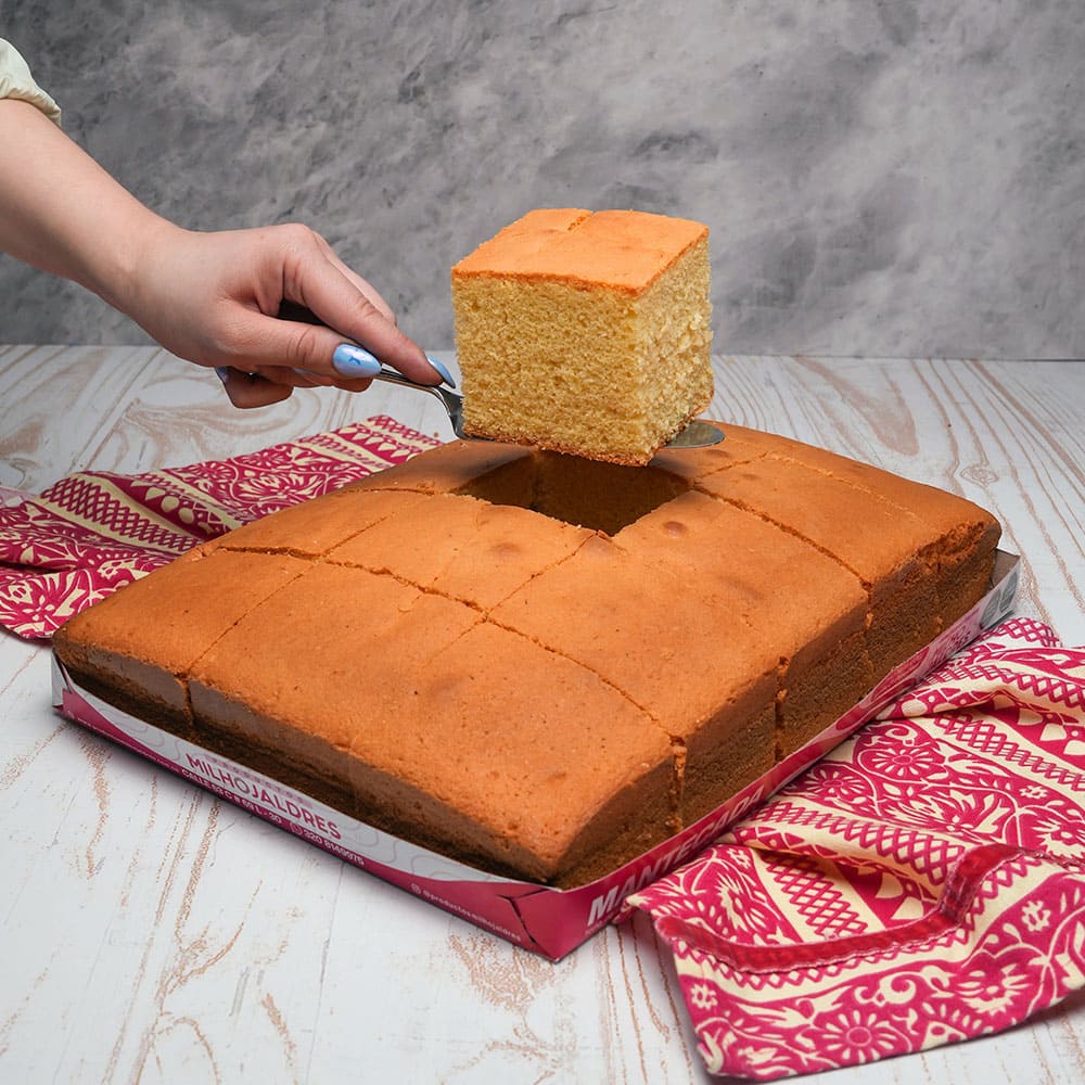 Bizcocho esponjoso con un delicado toque de naranja, horneado con la receta casera de siempre. Disponible en varias presentaciones según el tamaño que prefieras. Ideal para compartir en familia, en reuniones o para endulzar una tarde.