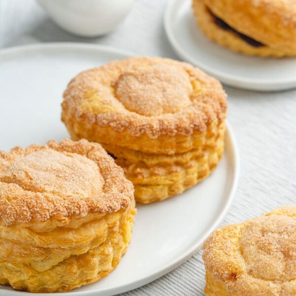 Un clásico lleno de tradición. Hojaldre crujiente relleno de bocadillo, coronado con una capa de azúcar caramelizada que lo hace aún más irresistible. Dulce y ligero, ideal para acompañar un café o como un detalle especial en tus reuniones.